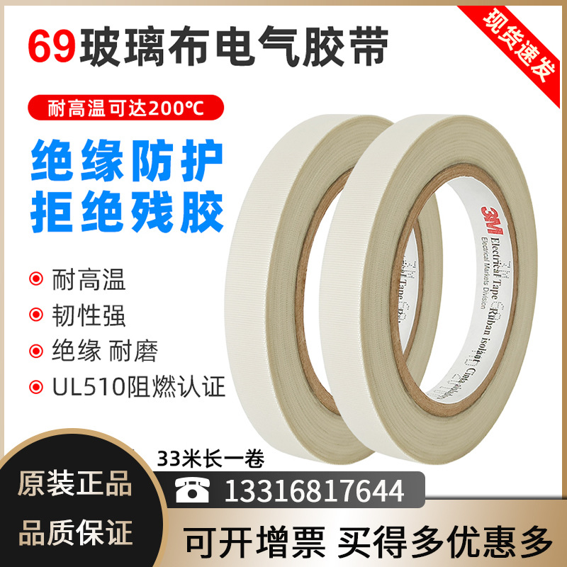 3M69#玻璃纤维布胶带防火阻燃耐高温白