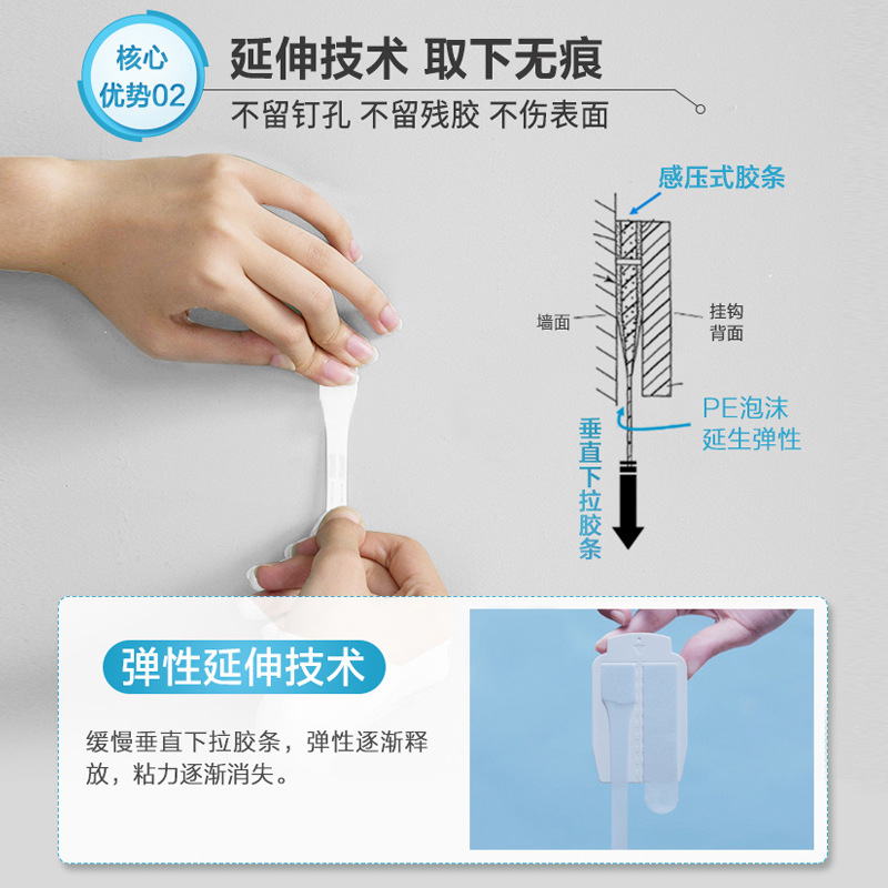 3M高曼无痕挂钩胶条替换装强力双面胶免打孔强力粘胶防水魔力贴画